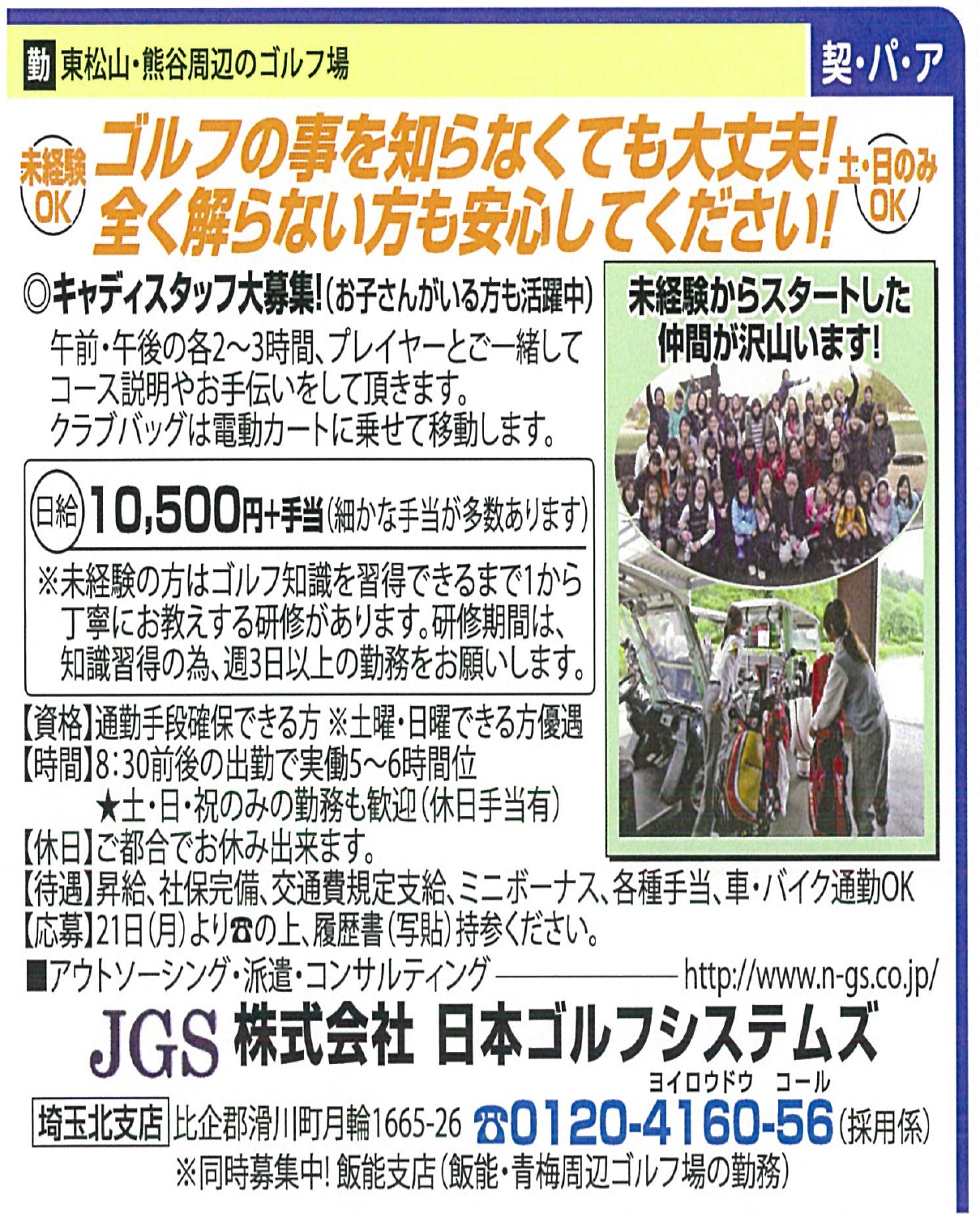 4/16 ゴルフ未経験者大歓迎!キャディスタッフ求人!